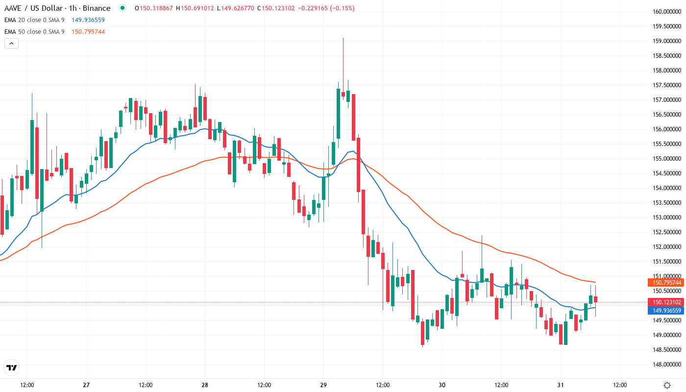 Aave Darted to $150 as Whale Exodus Triggers 15% Weekly Plunge