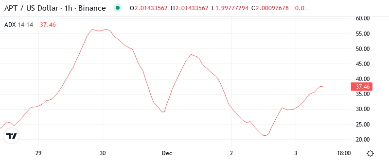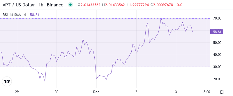 Given the oversold RSI, exhausted ADX, and proximity to tested support at $1.81, the most probable near-term path sees APT consolidating between $1.81-$2.13 while the market digests both the positive ecosystem news and December unlock implications before picking a direction.