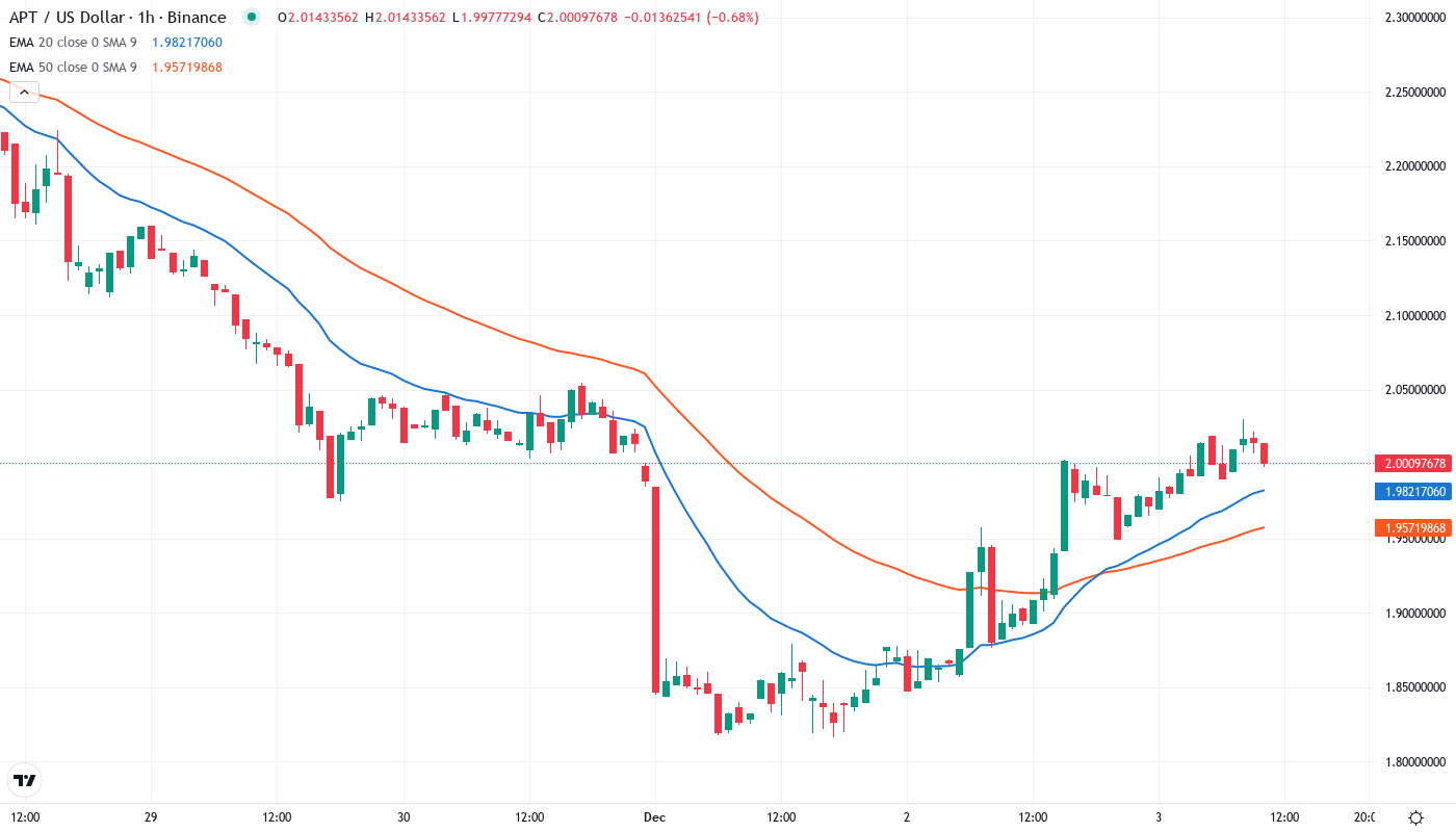 Bulls require a convincing close above the 10-day EMA at $2.13 to confirm even a basic oversold bounce is underway. Should APT reclaim this level and hold it on a retest, the path opens to challenge $2.36 resistance while the Paxos USDG0 integration and CreatorFi platform provide fundamental catalysts beyond just technical oversold readings.