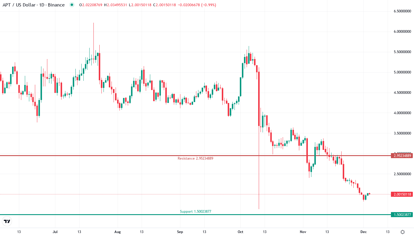 - APT tumbles 27.9% weekly, testing critical support at $2.00 as selling pressure mounts