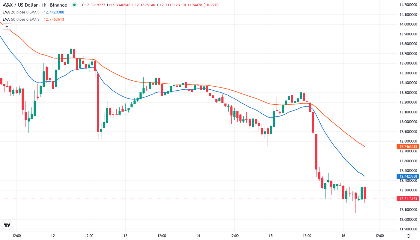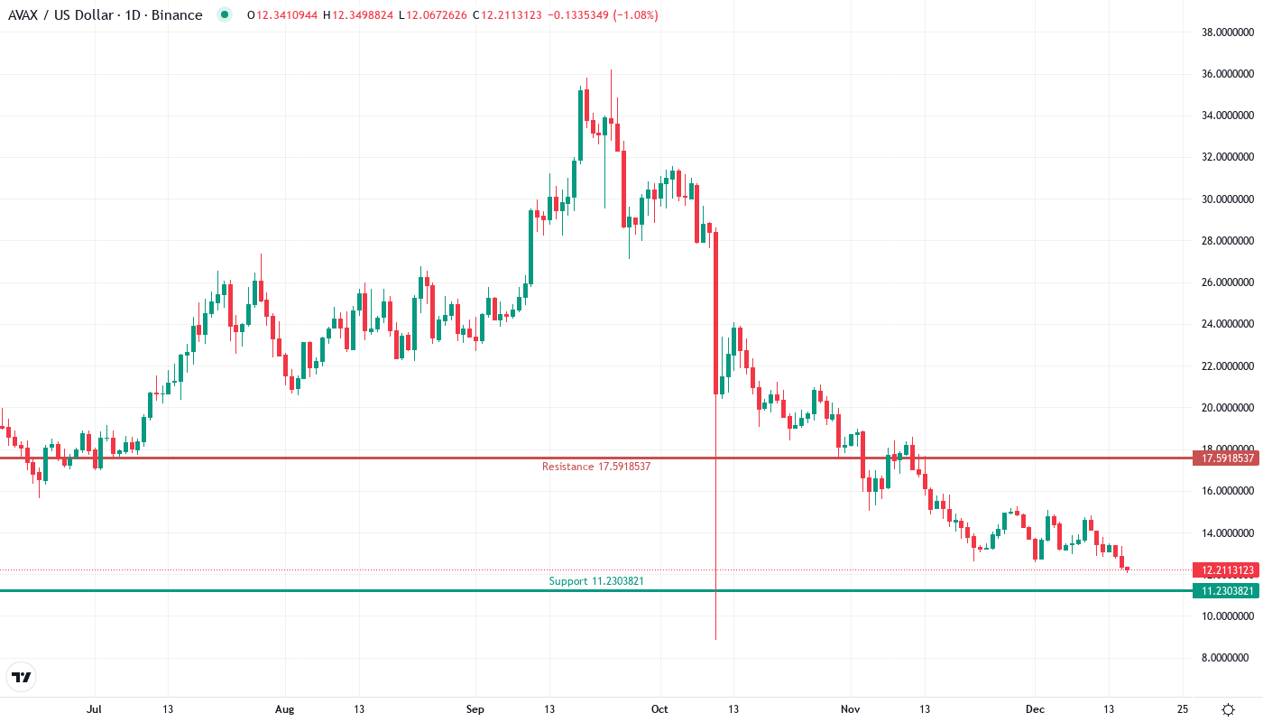 - The price is currently hovering near a critical support level of $12.21 after dropping 21% in the current month.