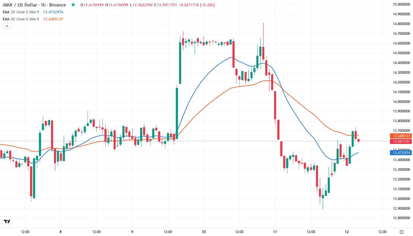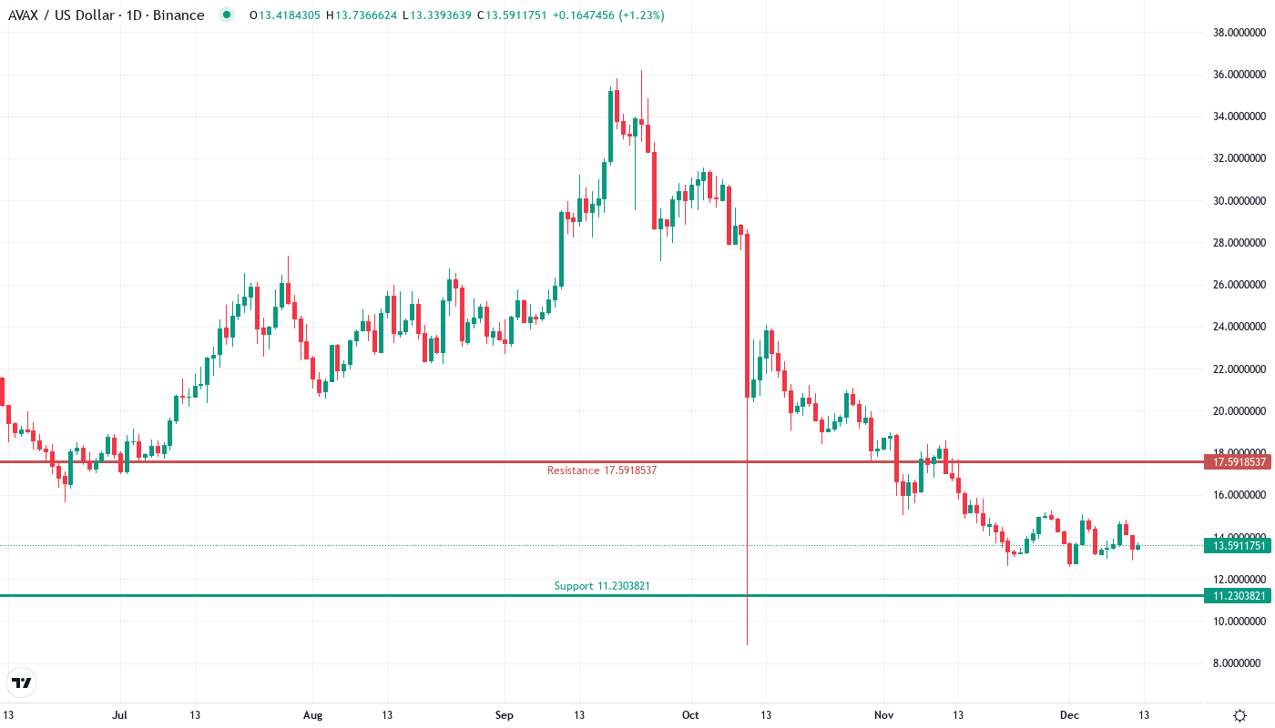 • AVAX consolidates at $13.58 after establishing a DLT foundation in Abu Dhabi’s global market