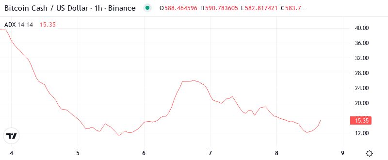 Looking at the ADX trajectory, the indicator accelerated from readings below 20 just a week ago, matching the pattern observed before November’s trending move higher. This rapid ADX expansion from compressed levels often precedes BCH’s most explosive moves, as it signals fresh capital entering after extended consolidation. Therefore, day traders should adjust their strategies toward breakout and momentum plays rather than fading moves at range boundaries, particularly with BCH’s 2025 outperformance drawing increased attention from traders rotating out of underperforming L1s.