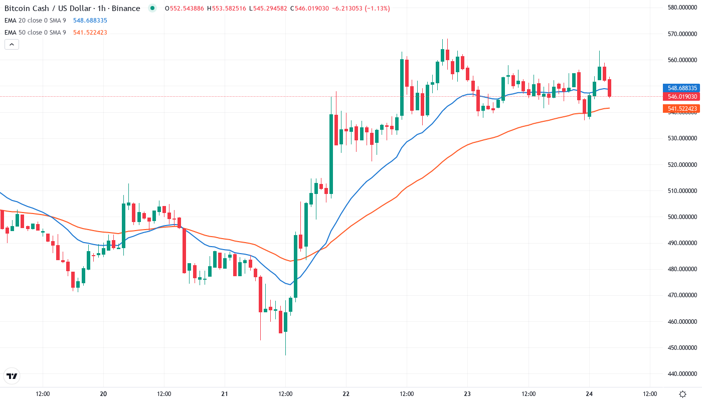 The 10-day is also about to bullishly cross the 50-day, which would complete the Holy Trinity for the uptrend merchant. For BCH to jump on the next rung that will lead to $750, it simply has to consolidate and continue doing what it has been doing for the last three weeks.
