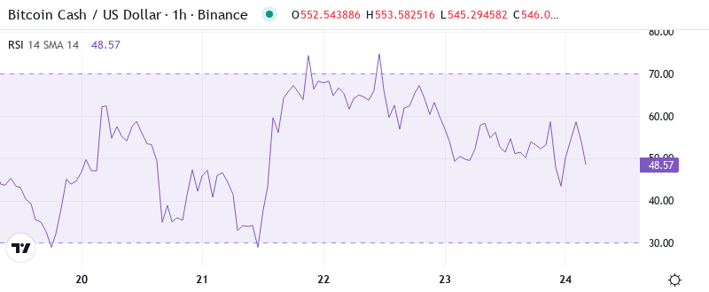 When we look at trend strength the ADX is reading just 17.99 which is well below the 25 levels which indicate trending conditions. This likely seems positive given BCH’s performance over the month but it actually highlights something crucial about the market structure: the move higher has been more of a violent reversion than a steady trend and BCH basically ripped through multiple resistance levels in sharp bursts over the month, rather than grinding steadily higher.