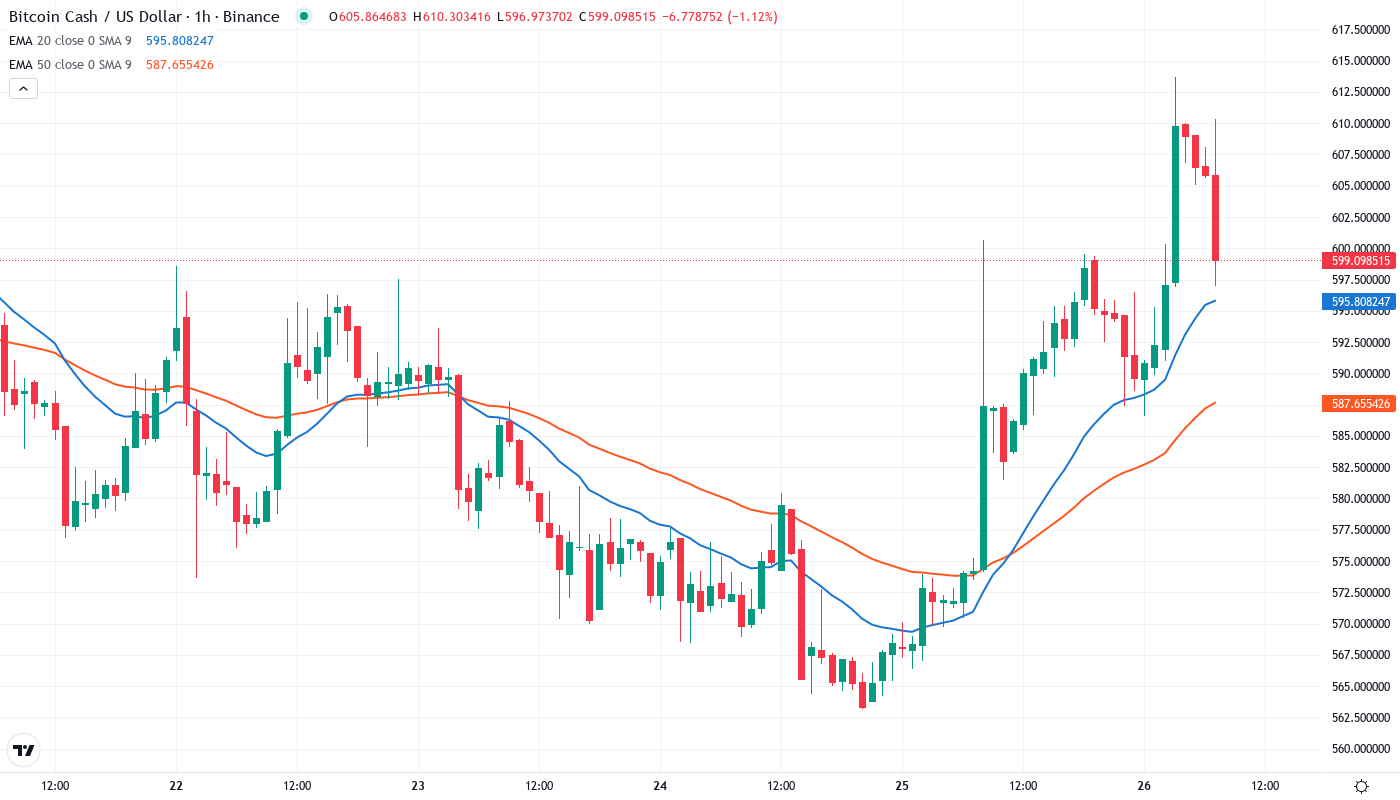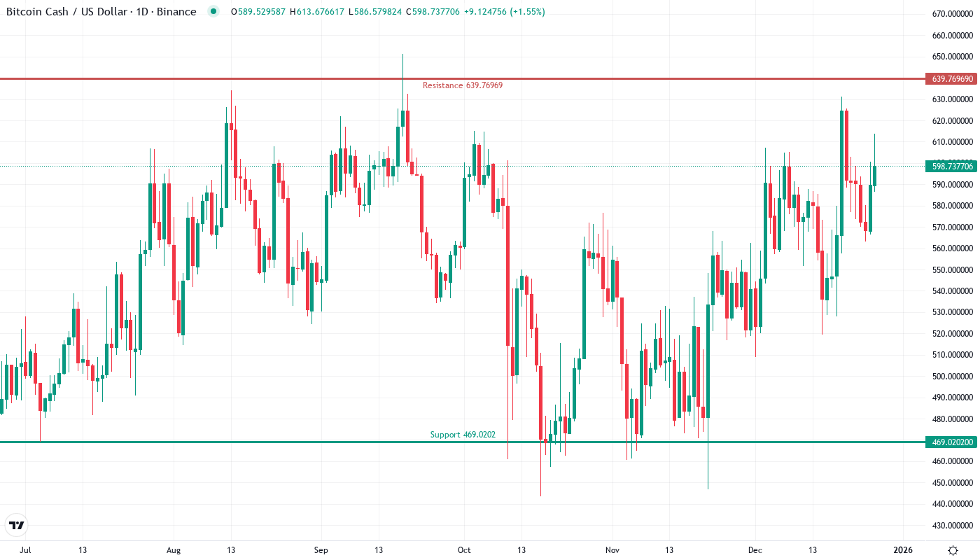 Bitcoin Cash began 2025 with a powerful 40% rally propelling it to the top of layer-1 blockchains, breaking through resistance while other crypto markets meander. The push from $428 to current levels near $600 marks BCH’s best new year’s start since 2021’s bull run, amid the influx of new institutional demand following the Bitwise 10 Crypto Index Fund’s approval on a coin that appeared forgotten by most. The key question on traders’ minds is whether the current momentum will be enough to breach $600 or if the previous high of $631 from December will act as strong resistance.