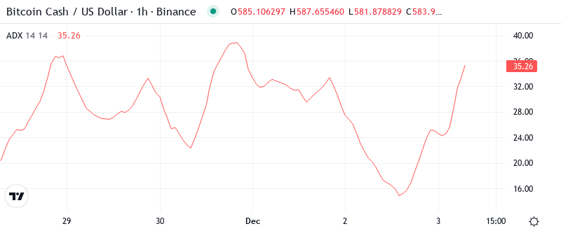 Considering the technical setup and diminishing Mt. Gox worries, the likely short-term scenario is for BCH to consolidate in the $560-590 range and then try to break through the $600 price point. An increasing ADX, a steady RSI, and a confirmed support/resistance flip make it easier for bulls to take the lead and control the risk since these levels are easy to determine.