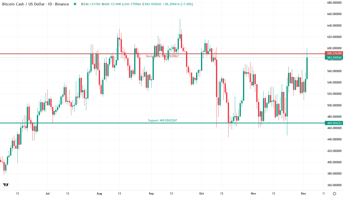 Bitcoin Cash Surges 51% in Monthly Rally as Bulls Eye $600 Resistance