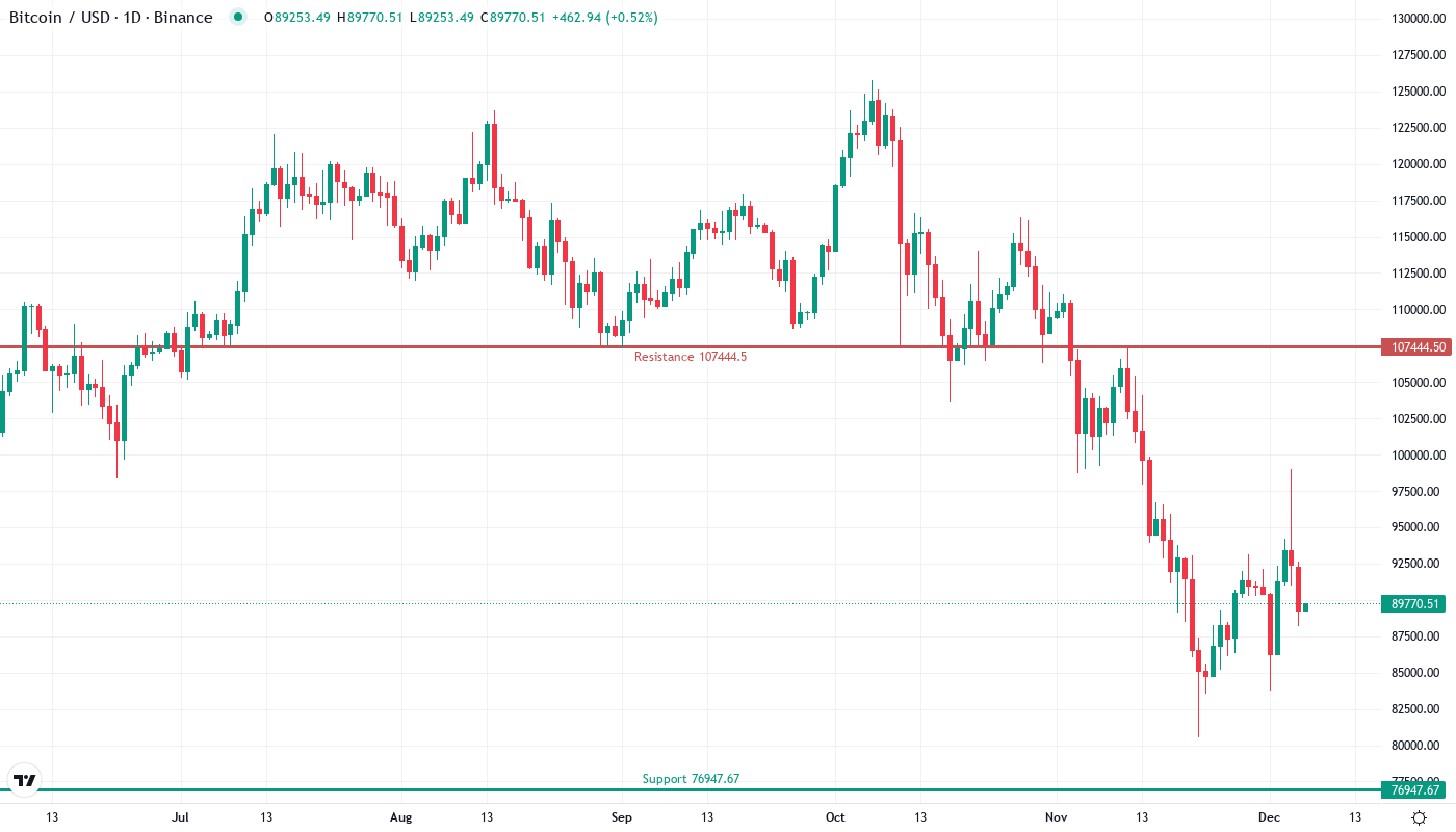 Bitcoin Tests Support at $89.7K as Momentum Indicators Reset From December Highs