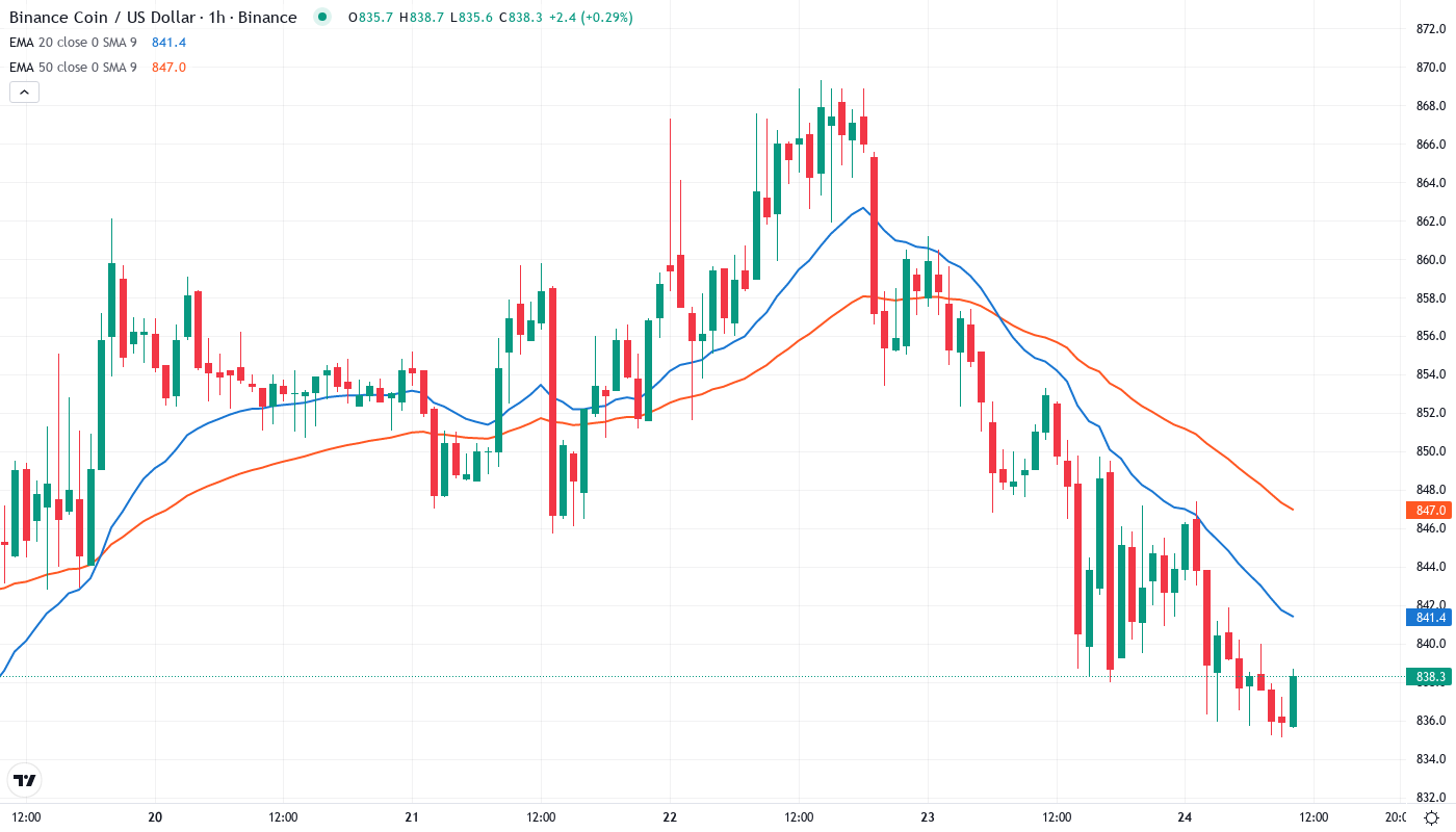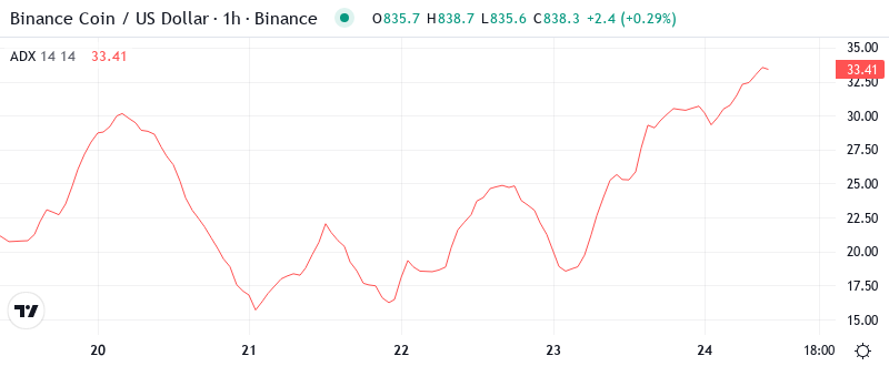 With the technical reset to neutral RSI, rising ADX signaling trend development, and fundamental support from institutional adoption the most probable near-term path sees BNB consolidating between $814-$903 while building energy for the next directional move. Watch for either additional reserve asset announcements to catalyze an upside breakout or technical rejection at $903 to call for further consolidation.