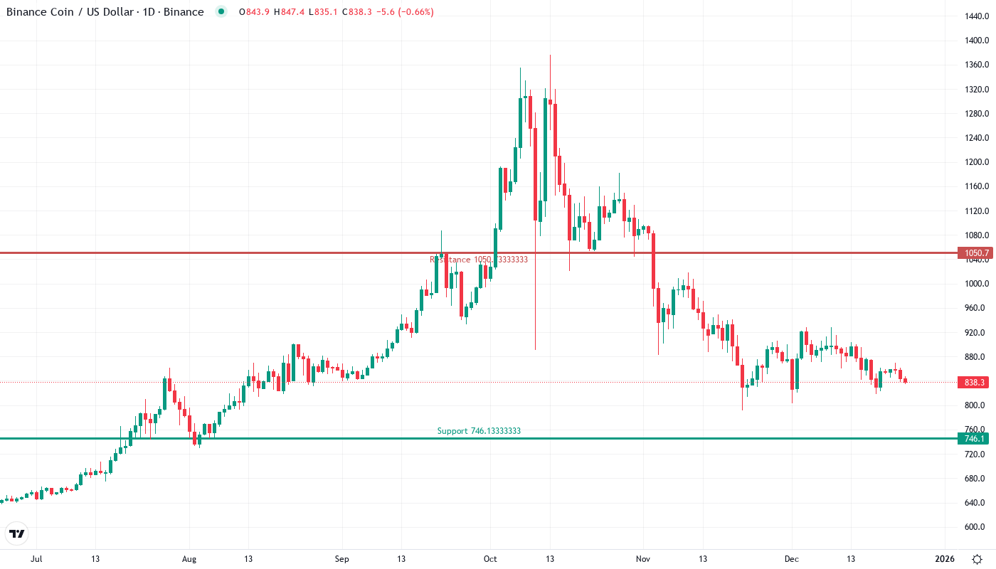 The series of momentum setups in early December predated BNB’s run from $636 to $928 – a 46% rally that set the current trading range. For swing traders, this RSI reset coupled with healthy reserve asset fundamentals appears an attractive technical pause meets positive narrative scenario. What sets this cycle apart, however, is the institutional imprimatur via China Properties’ allocation, introducing an additional layer of fresh catalyst to prior cycles.