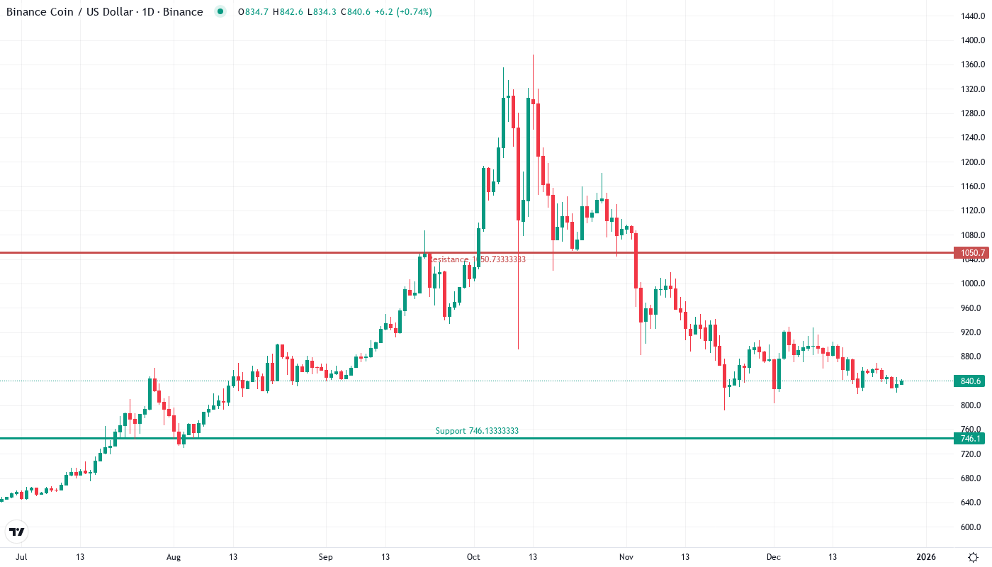 Based on current momentum indicators and the upcoming January 14 catalyst, the most likely short-term scenario is for BNB to consolidate in the $840-$870 area as investors Fermi Hard Fork wait for the event to be implemented. Overextended RSI conditions and increasing ADX point to sideways price action in preparation for the subsequent leg. The upcoming technical update will probably decide if that will be in the direction of $916 or $800.