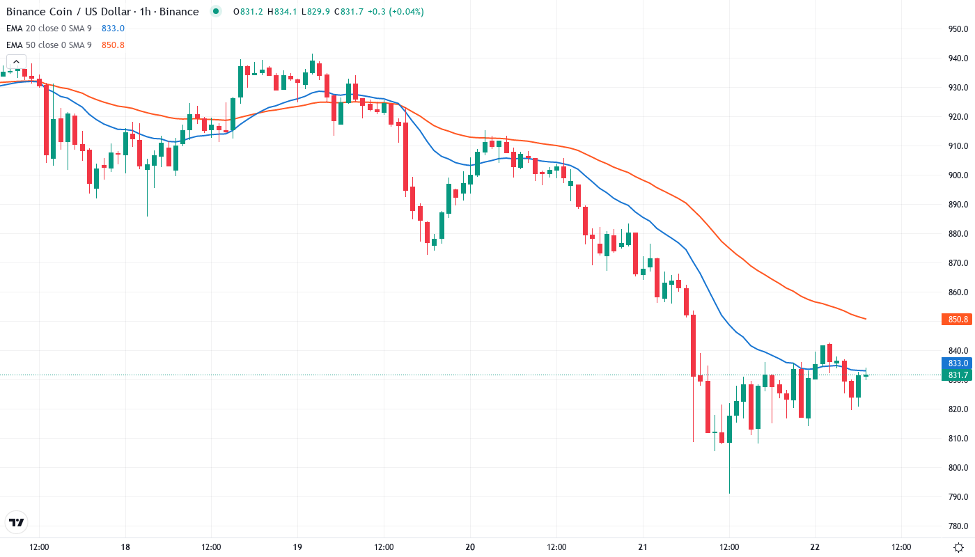 BNB Tests Critical Support at $832 After Month-Long Bleed From $1,080
