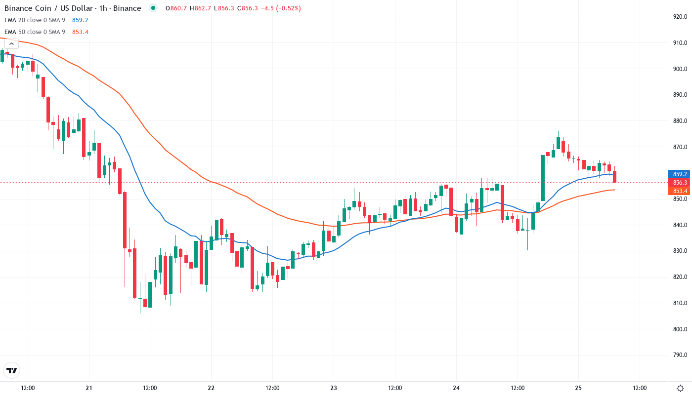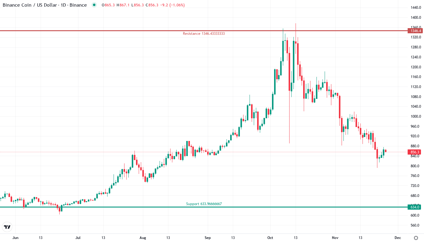 BNB Tests Monthly Support at $857 After 23% December Plunge
