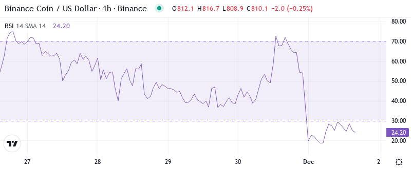 So for swing traders, this oversold RSI configuration presents a classic mean-reversion setup, though catching falling knives requires precise timing and strict risk management. Historical data shows BNB typically bounces within 3-5 days of hitting RSI readings below 35, but given the magnitude of the whale dump and ongoing regulatory concerns from the Europol cryptomixer raids, any relief rally might face immediate selling pressure. The combination of technical oversold conditions with fundamental headwinds creates a high-risk, high-reward scenario where patient traders might find opportunity, but only if support at $812 proves resilient.
