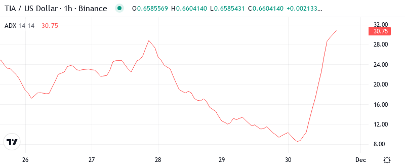 As a result, day traders need to adjust their tactics to the changing market dynamics. ADX’s compression of support at $0.66 and resistance at $0.72 indicates a clear breakout. It’s worth noting that an ADX setup comparable to the current one in November alerted investors to TIA’s last major price shift. The only difference was that, back then, the breakout was to the positive as a result of the Matcha update hype.