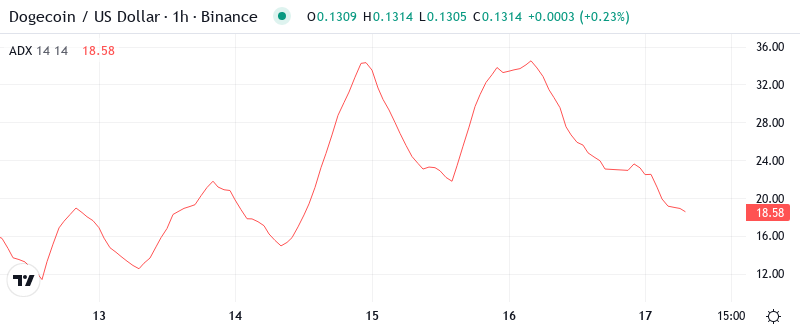 If we don’t see a relief bounce back over $0.131, the next downside point of interest is $0.123, at which point the technical damage would become more pronounced and the trap for new dip buyers would become clearer. The higher the ADX, the weaker the chance of a trend reversal.