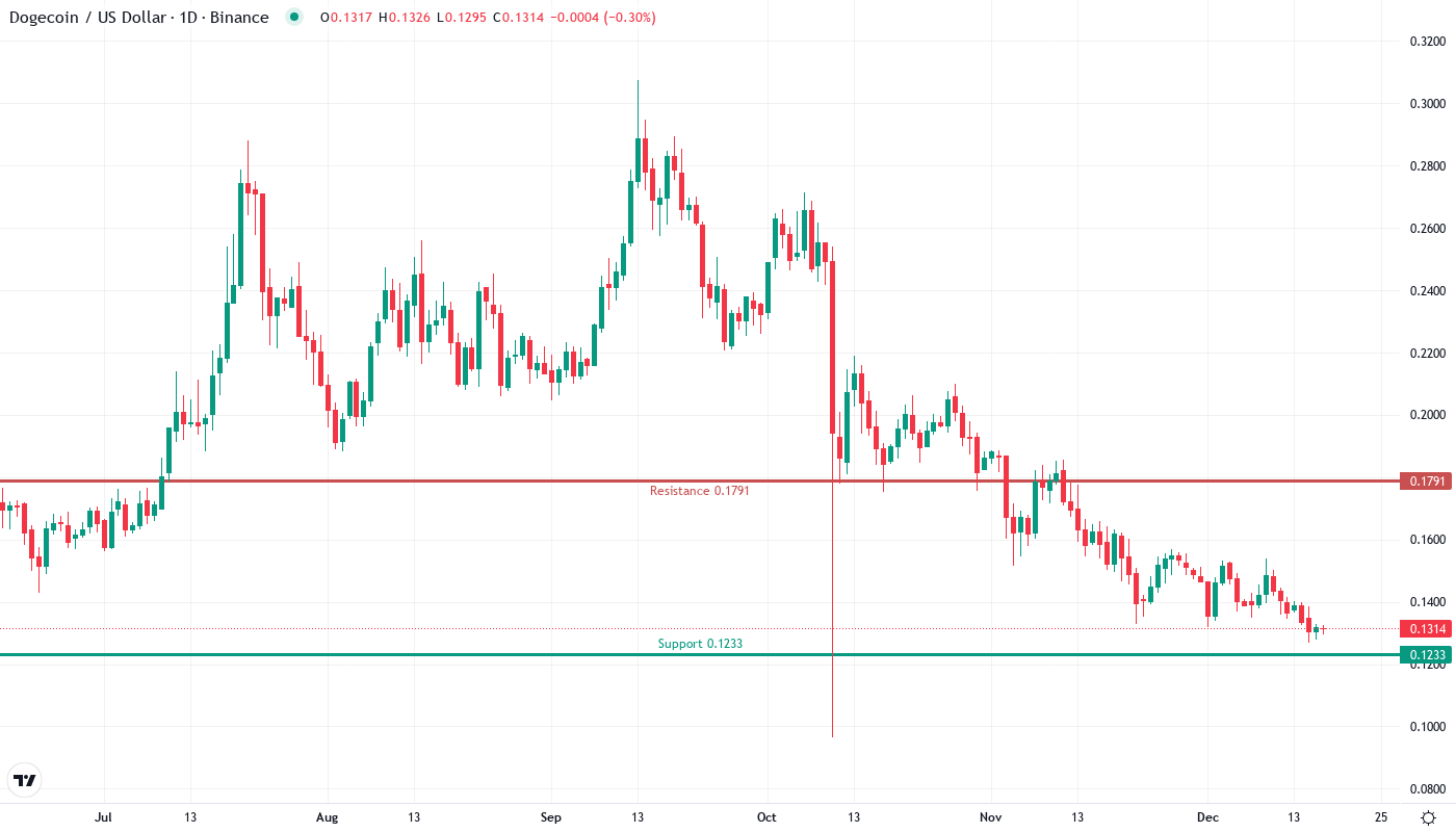 Considering the technical evidence and the fact that bullish news hasn’t been enough to turn the tide, the most likely short-term scenario is that DOGE will consolidate in the $0.126-$0.134 range. This doesn’t mean the asset is being left for dead, but rather that it’s going through a needed correction as part of a broader trend that needs to consolidate for a while to establish new bases.