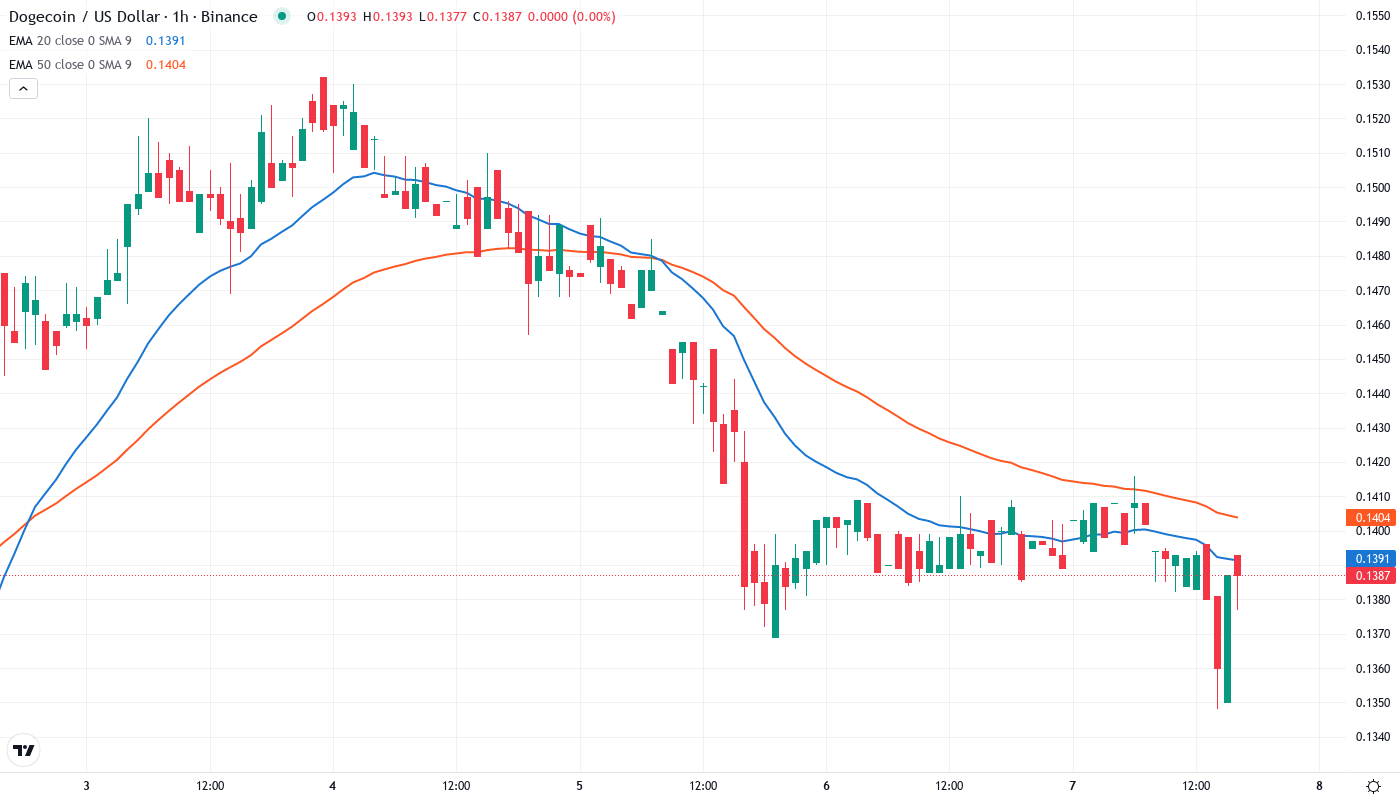 Crucially, the compression between current price ($0.1386) and the 10-day EMA ($0.144) leaves minimal room for error. This tight spacing often precedes explosive moves as trapped positions unwind in either direction. The setup resembles a coiled spring where the first group to lose patience could trigger a cascade – bulls capitulating below $0.138 would target $0.123 support, while bears covering above $0.144 could squeeze price toward the 20-day EMA at $0.155.