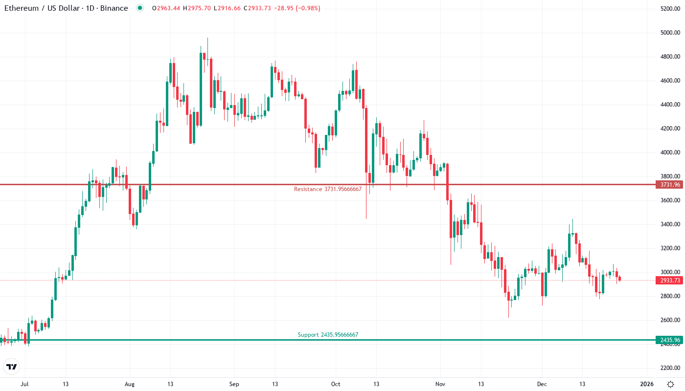 With the neutral momentum readings and healthy EMA structure, Ethereum is well-placed to consolidate between $2,854 and $3,055 as it digests the recent institutional repositioning. A catalyst will be required – either renewed whale accumulation or ETF flow recovery – to break out of this compression zone.