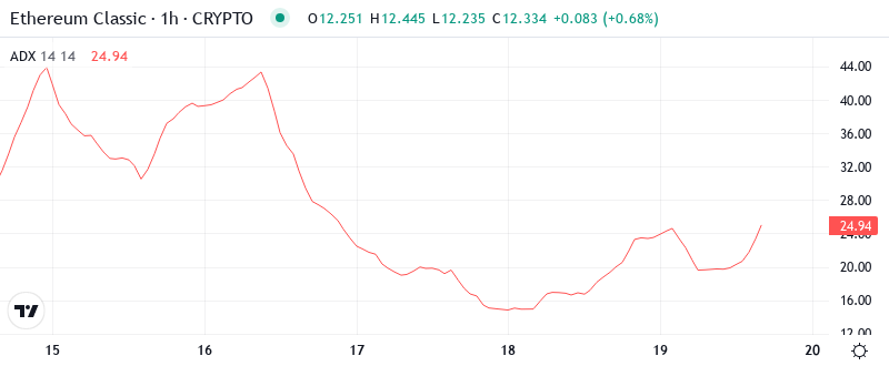 At the level of 28.46, the ADX entry indicates that the trend is gaining power but it’s not at the extremes yet. Basically, being in this zone means ETC has shifted from November’s choppy consolidation into a defined downtrend that rewards momentum strategies over mean reversion plays.