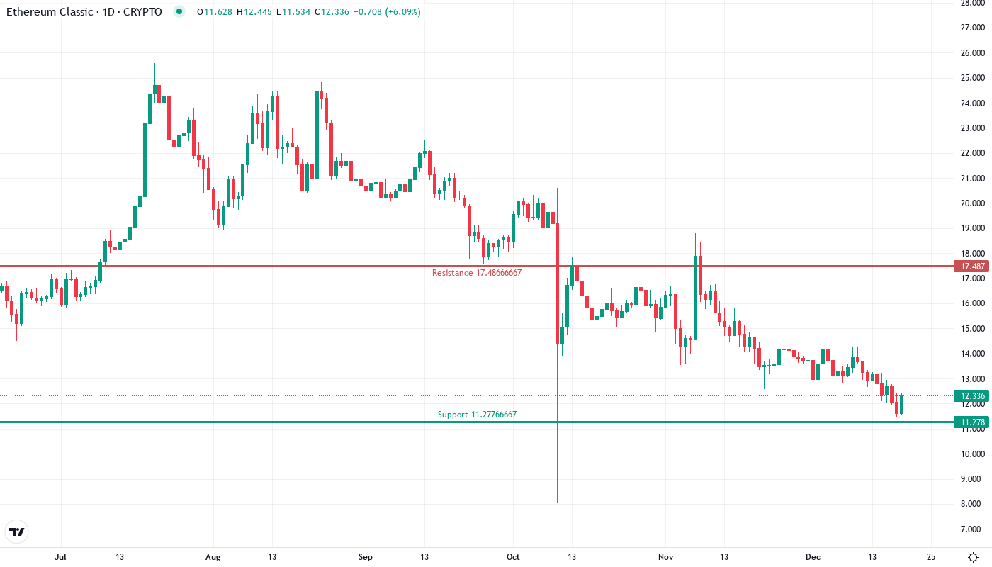 Ethereum Classic has taken a devastating 15.45% tumble over the past month, with the price action erasing three months of attempted recovery in just four weeks. The collapse from December’s $14.47 highs to current levels at $12.38 came as unfavorable scalability comparisons with newer networks like Kaspa hit the wires, triggering stop-loss cascades below key technical levels. The main question for traders is: can ETC’s battered bulls defend current support, or will the technical breakdown accelerate toward single digits?