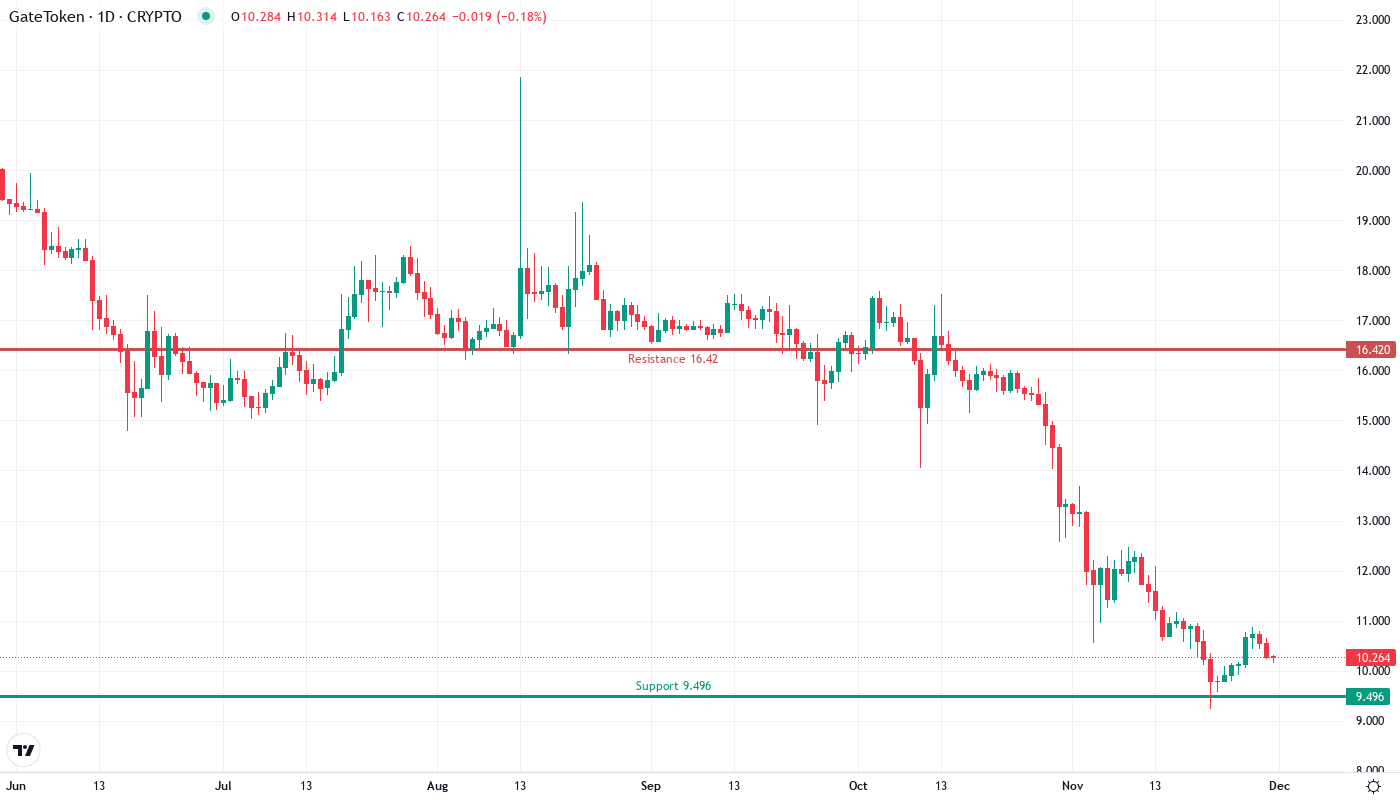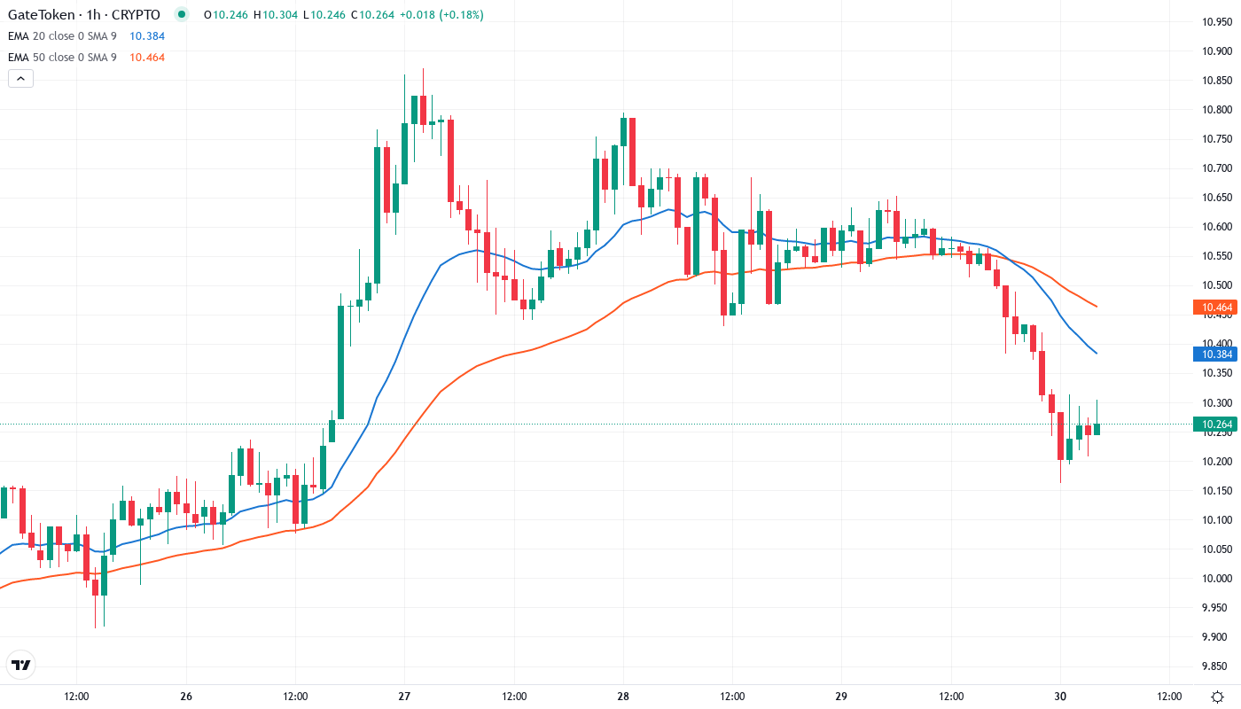 GateToken’s price action tells a sobering story this week, tumbling 22.79% to $10.25 even as Gate announced its Layer 2 network with GT as the exclusive gas token. The devastating drop from last week’s $13.69 high came as traders took profits on the Layer 2 news, triggering a cascade that sliced through multiple support levels. With the token down 39.27% over the past month and 46.66% from three-month highs, the main question for traders is: can the Layer 2 narrative provide enough fundamental support to halt this technical breakdown, or will sellers continue pressing their advantage?