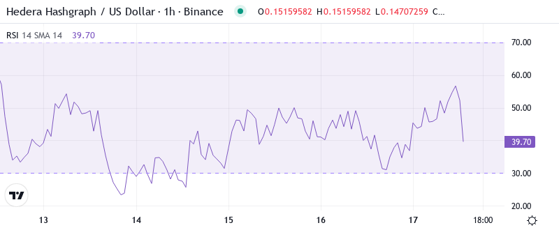 The Relative Strength Index (RSI) is at 35.67 on the daily timeframe, which is the first truly oversold reading since August’s capitulation prior to a 64% annual rally. This is not your run-of-the-mill dip—we are talking about momentum exhaustion, the sort that tends to lead to relief bounces in HBAR historically. The weekly RSI paints an even more dire picture at 39.02, verifying that sellers have essentially taken this move to levels seldom seen outside of major market corrections.