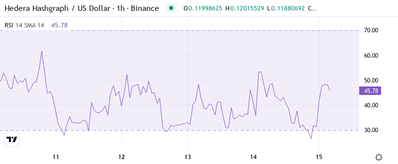 Reading the oscillator at 34.46 on the daily timeframe reveals momentum has reached oversold conditions for the first time since August’s market-wide washout. This exhaustion comes after HBAR shed nearly 50% from its three-month peak, with sellers maintaining control despite multiple partnership announcements that would typically support price. The RSI’s descent below 35 historically marked local bottoms in June and August, both times preceding 20-30% relief rallies within two weeks.