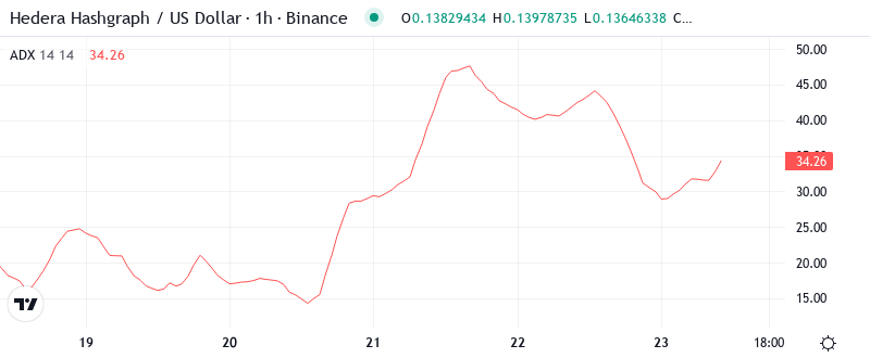 At the level of 27.08, the ADX entry indicates that trend strength is gaining power but hasn’t reached extremes yet. Basically, being in this zone means HBAR has transitioned from the sub-20 choppy conditions that dominated early December into a trending state where directional moves carry follow-through – precisely the environment where the new Global Partnership Program announcement could catalyze sustained price action.