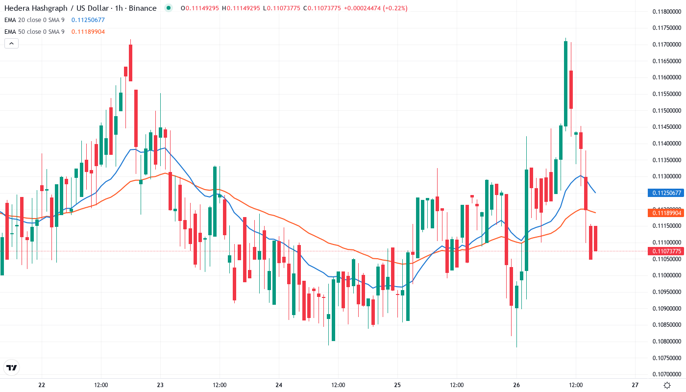To change the current bearish short-term trend, the bulls additionally need to push past the 20-EMA and establish support above these levels. This would likely push the price to test 50-day EMA resistance of $0.14. A positive breakout above this level could eventually lead the price towards the $0.15 resistance point.