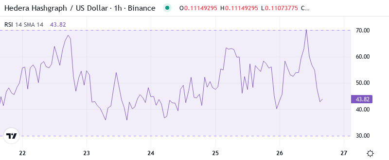 - HBAR price fell 23.2% to $0.1107, approaching six-month support at $0.1024.