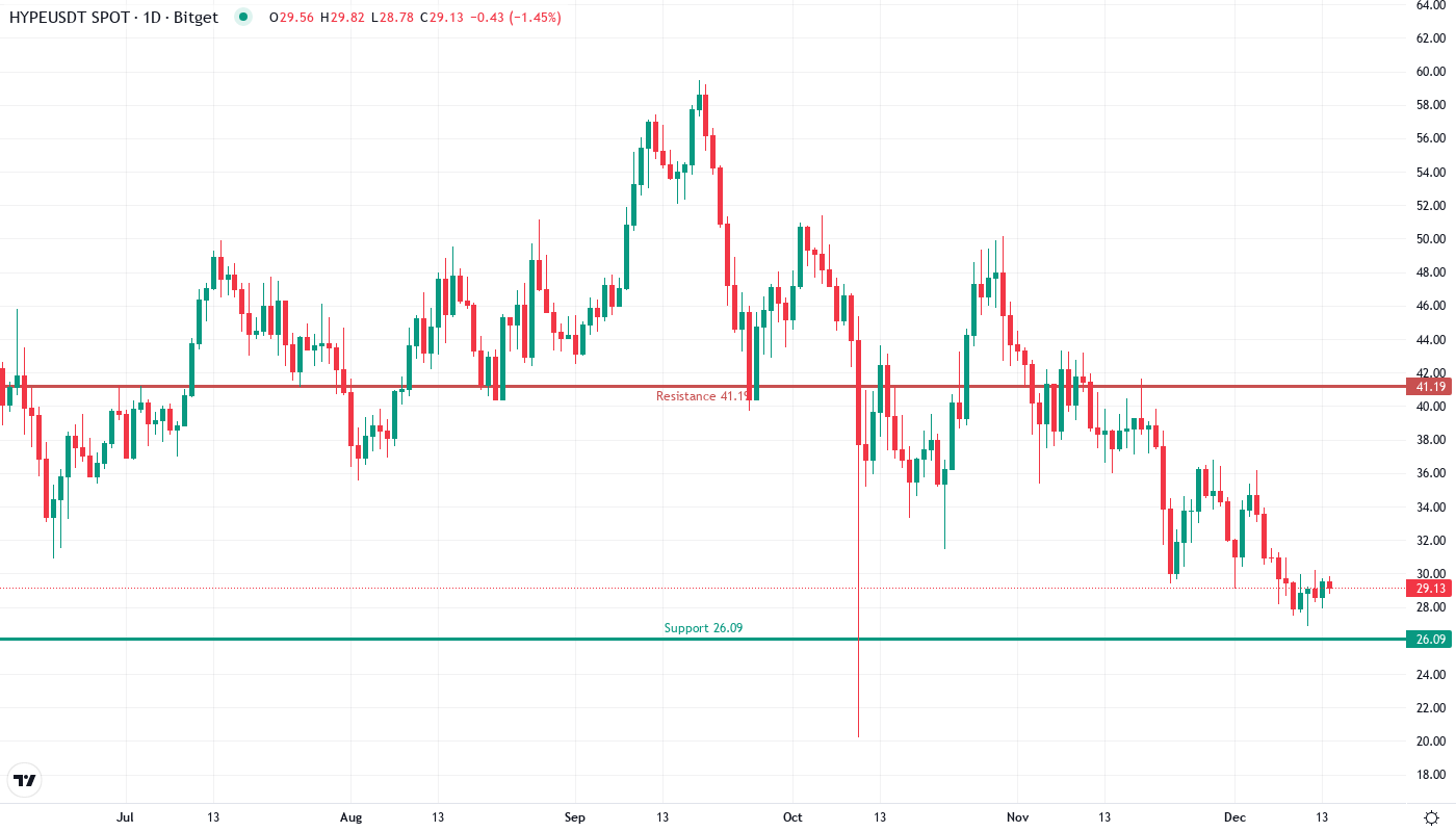 The brutal descent of Hyperliquid accelerated this week as HYPE shed another 6.2%, taking the total decline from its $41.63 peak to a devastating 45.86%. The token now trades at $29.05, matching both its weekly and monthly closing prices in what…