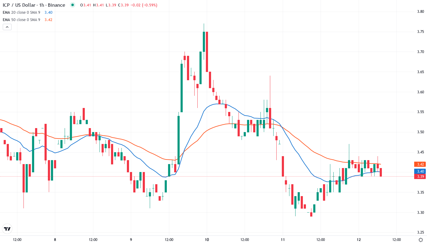 The bearish scenario triggers if ICP loses the $3.29 support on volume – this would trap recent bottom-fishers and likely cascade toward $2.80 or potentially the psychological $2.50 level. Given the lack of buying interest despite positive ecosystem news, this breakdown scenario carries meaningful probability.