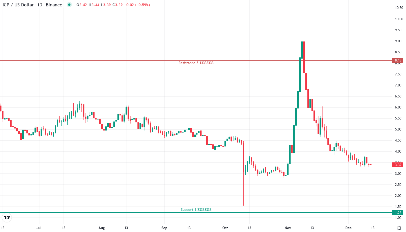 Internet Computer’s price action tells a brutal story this December, with ICP shedding 43.14% of its value in a devastating drop that erased months of gains. The collapse from monthly highs near $7.85 to current levels around $3.40 came despite significant ecosystem updates including AI tooling enhancements and expanded developer resources – underlining how macro headwinds overwhelmed positive fundamentals. The main question for traders is: has ICP found a floor at these oversold levels, or does further downside await as the broader crypto market continues its year-end washout?