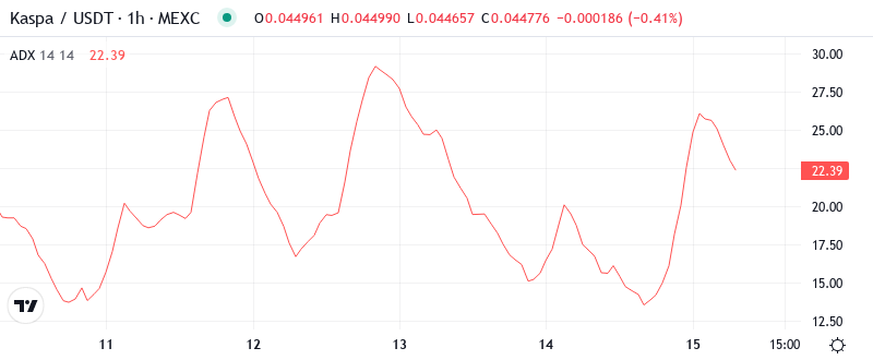 To clarify, this sub-25 ADX reading suggests KAS remains trapped in a broader consolidation phase despite this week’s sharp drop. The selloff represents more of a range expansion than a true breakdown, especially with whales stepping in to defend key levels. Therefore, day traders should focus on mean reversion strategies between $0.044 support and $0.052 resistance until ADX confirms a directional breakout above 25 or collapses back below 20.