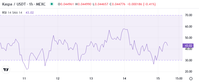RSI sits at 39.11 on the daily timeframe, marking the first genuine oversold reading in nearly three months. This level historically triggered relief bounces for KAS, with October’s similar configuration preceding a 40% surge once selling exhaustion kicked in. The oscillator’s descent from neutral territory above 50 just two weeks ago reflects how quickly sentiment shifted – though crucially, it hasn’t yet pierced the extreme oversold zone below 30 that would signal full capitulation.
