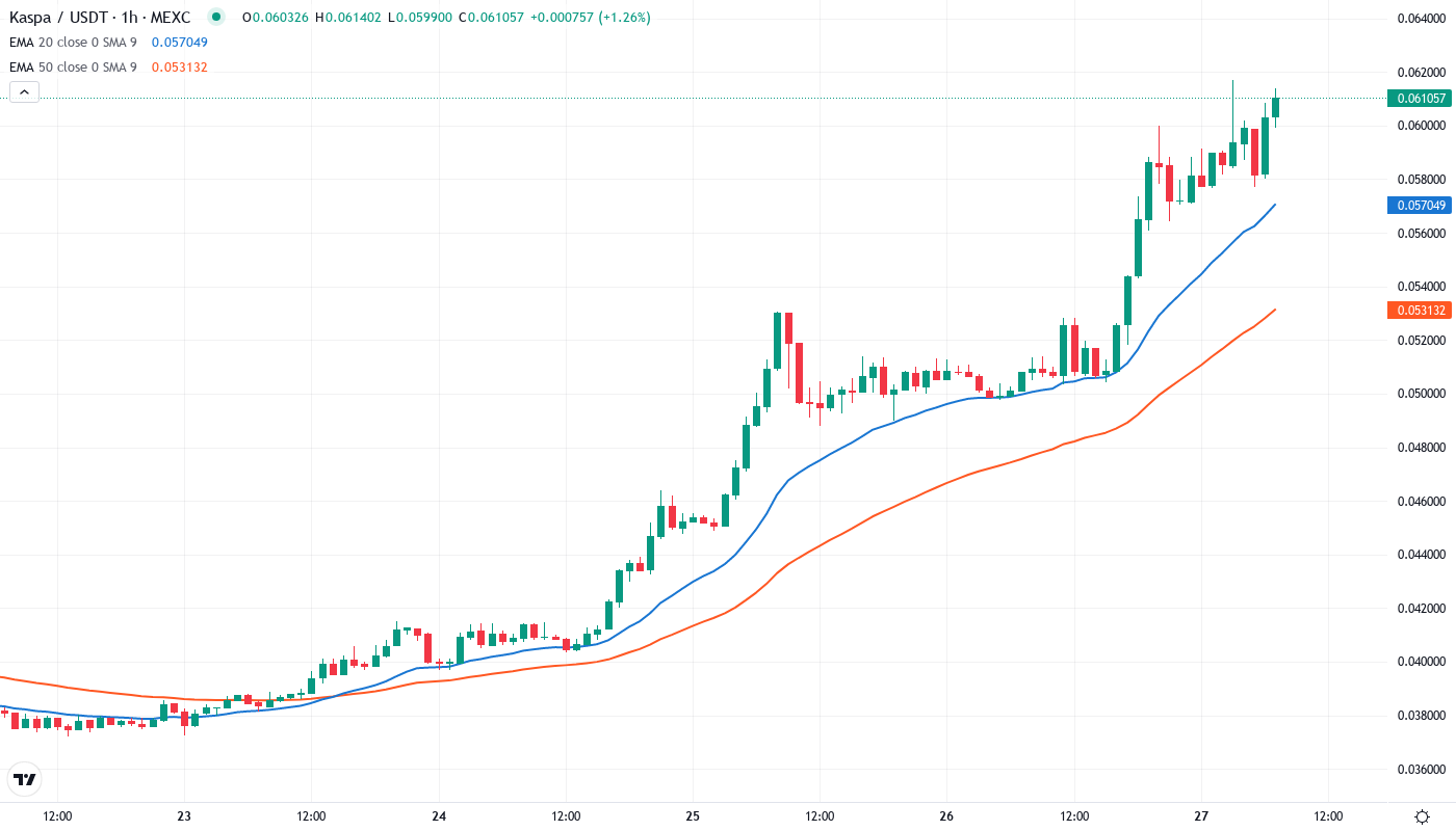 Based on the technical setup and recent developments, the most likely short-term direction has KAS ranging between $0.054-0.075 as investors absorb the EVM upgrade announcement. The oversold rally exhaustion, increasing network fundamentals, and significant wallet accumulation indicate that any breaches of this range to the downside will likely be short-lived as traders look to accumulate before the uptrend resumes on smart contracts.