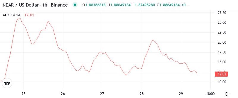 At the level of 19.5, the ADX entry indicates that NEAR has shifted from trending to ranging conditions – basically a momentum vacuum where neither bulls nor bears command decisive control. This reading sits well below the 25 threshold that typically marks trending markets, suggesting the recent selloff has exhausted itself into sideways chop rather than continuation.