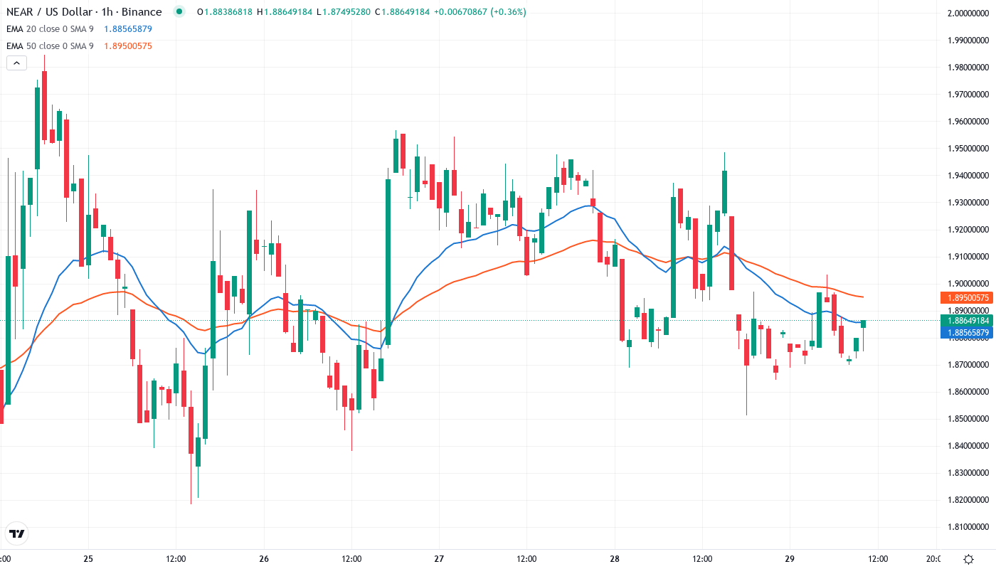 Given oversold RSI, non-trending ADX conditions, and repeated defense of $1.80 support despite negative sentiment, the most probable near-term outcome sees NEAR consolidating between $1.80-$2.10 while digesting the Intents milestone news. This ranging action would allow technical indicators to reset before the next directional move, with Van de Poppe’s conviction potentially attracting value hunters at these levels.