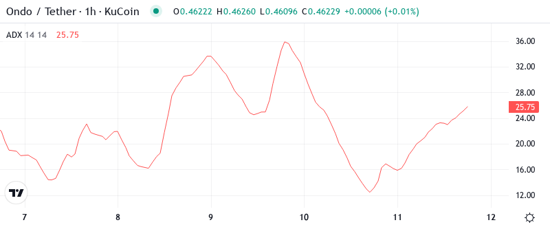 Considering the extreme oversold conditions, high ADX readings suggesting trend exhaustion, and significant fundamental developments in the pipeline, the most probable near-term path sees ONDO staging a relief bounce toward $0.52-0.55 resistance before the larger trend reasserts. However, traders should note that oversold conditions can persist longer than expected when institutional adoption narratives meet skeptical markets.