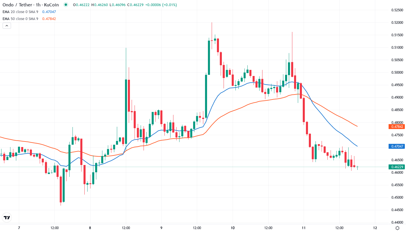 Ondo Finance finds itself caught in a fascinating paradox – garnering heavyweight institutional partnerships with State Street and Galaxy while its native token ONDO bleeds out technically. The cryptocurrency tumbled 34% over the past month to $0.463, even as the protocol surpassed $1.81 billion in total value locked and announced a $200 million seed investment plan for tokenized liquidity funds. This disconnect between fundamental strength and price weakness has created one of crypto’s most intriguing setups. The main question for traders is: will the technical capitulation finally align with the protocol’s growing institutional adoption, or does further downside await before smart money steps in?