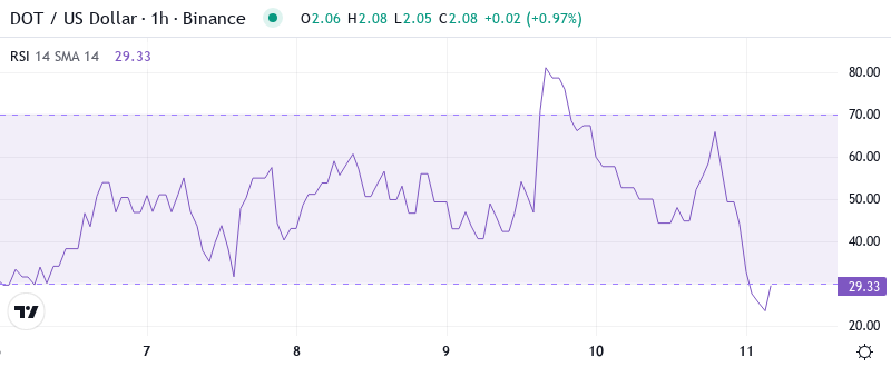 Polkadot’s price action tells a sobering story this week, with DOT clinging to $2.07 despite the Bitwise ETF debut that should have provided tailwind. The cryptocurrency has shed 36.7% over the past month and sits down 51.2% from three months ago, making it one of the weaker performers in the large-cap space. What’s particularly concerning is how the ETF inclusion news failed to spark any meaningful bounce – a classic case of “buy the rumor, sell the news” playing out in real-time. The main question for traders is: can the $2.00 psychological level hold after being tested repeatedly, or are we looking at a breakdown toward $1.75?