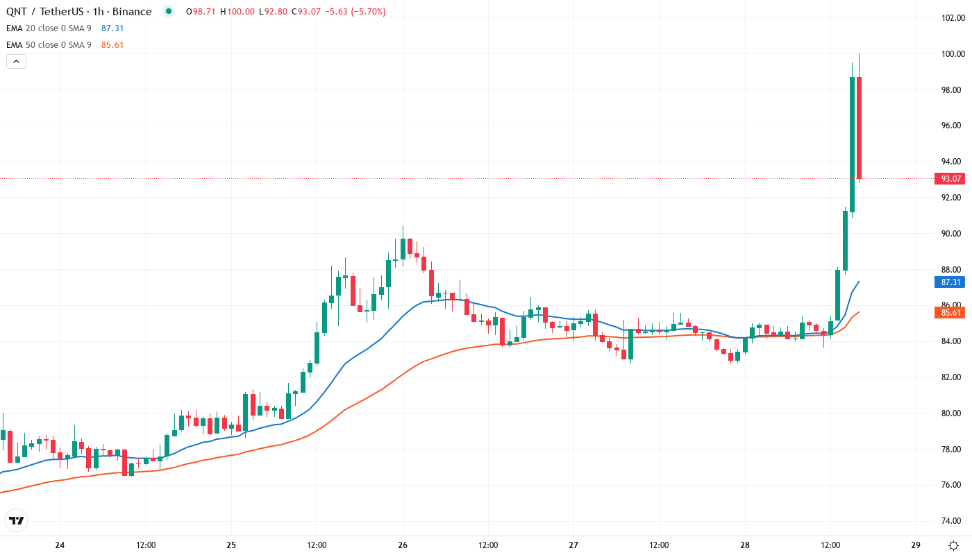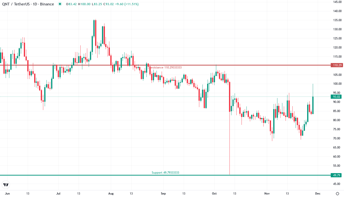• QNT bounces 27% this week to $95.13 after the recent drop in December