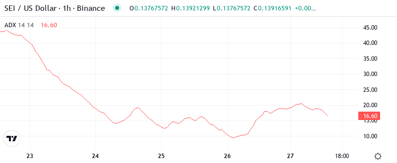 Looking at historical patterns, SEI’s ADX topped near 45 during August’s washout before the subsequent 150% relief rally. Therefore, position traders should prepare for increased volatility as this mature trend either accelerates into final capitulation below $0.128 or reverses sharply if institutional flows materialize around the ETF narrative and technical pattern recognition kicks in.