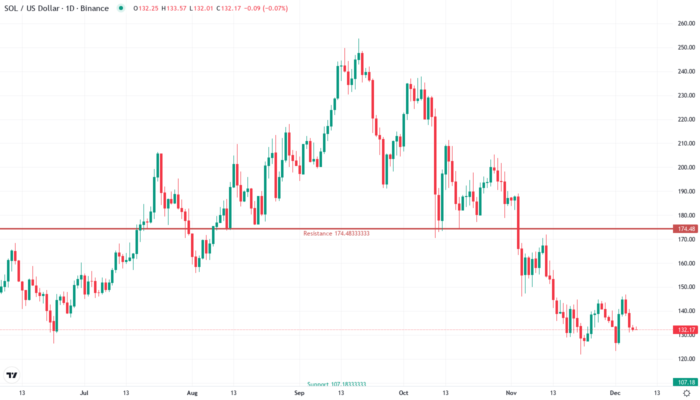 Importantly, buyers are poised to drive the short-term momentum if they hold $132 on any pullbacks. This is noteworthy as the bulls have managed to recapture the 10-day and 20-day EMAs, after losing them for over a month. Western Union recently announced plans to leverage the Solana blockchain for its stablecoin launch in 2026. A similar structure was seen in the month-long consolidation phase of late October and early November before the altcoin rallied to $170.