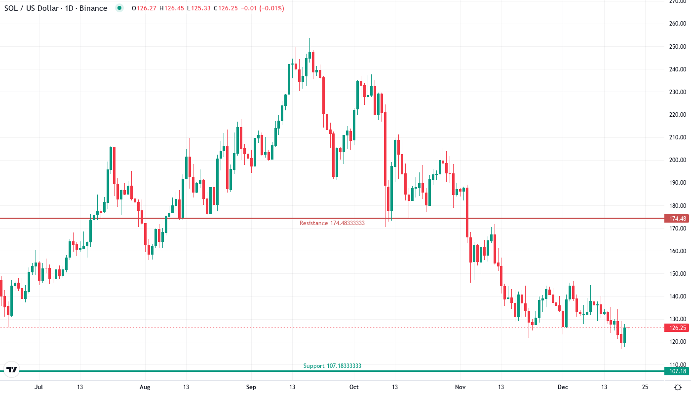 Solana is currently trading at $126.31, having lost 7.8% in the past month, but this correction appears to be bottoming as institutional infrastructure growth explodes beyond the network. The launch of $900 million in ETF assets combined with new future listings makes for a defensive floor not seen in previous corrections. While the token teases the monthly low of $116.94 several times, it currently holds – asking traders if institutional demand could lift up everyone’s technical weakness or if SOL demands lower before taking a stand?
