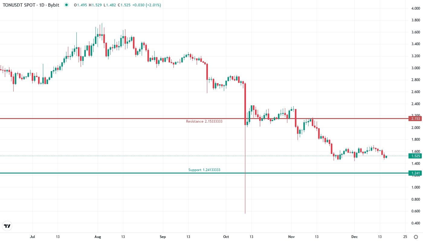 Toncoin is currently valued at $1.52, reflecting a harsh 17.8% drop over the past month, and a 76% year-to-date crash. The hefty selling pressure clashes with institutional accumulation, seen its ecosystem developer, AlphaTON Capital, filing a recent $420 million registration with the SEC. The question is, will this inflow of capital be enough to turn the prevailing downtrend or will bears come out on top once again, independent of the fundamental incentive?