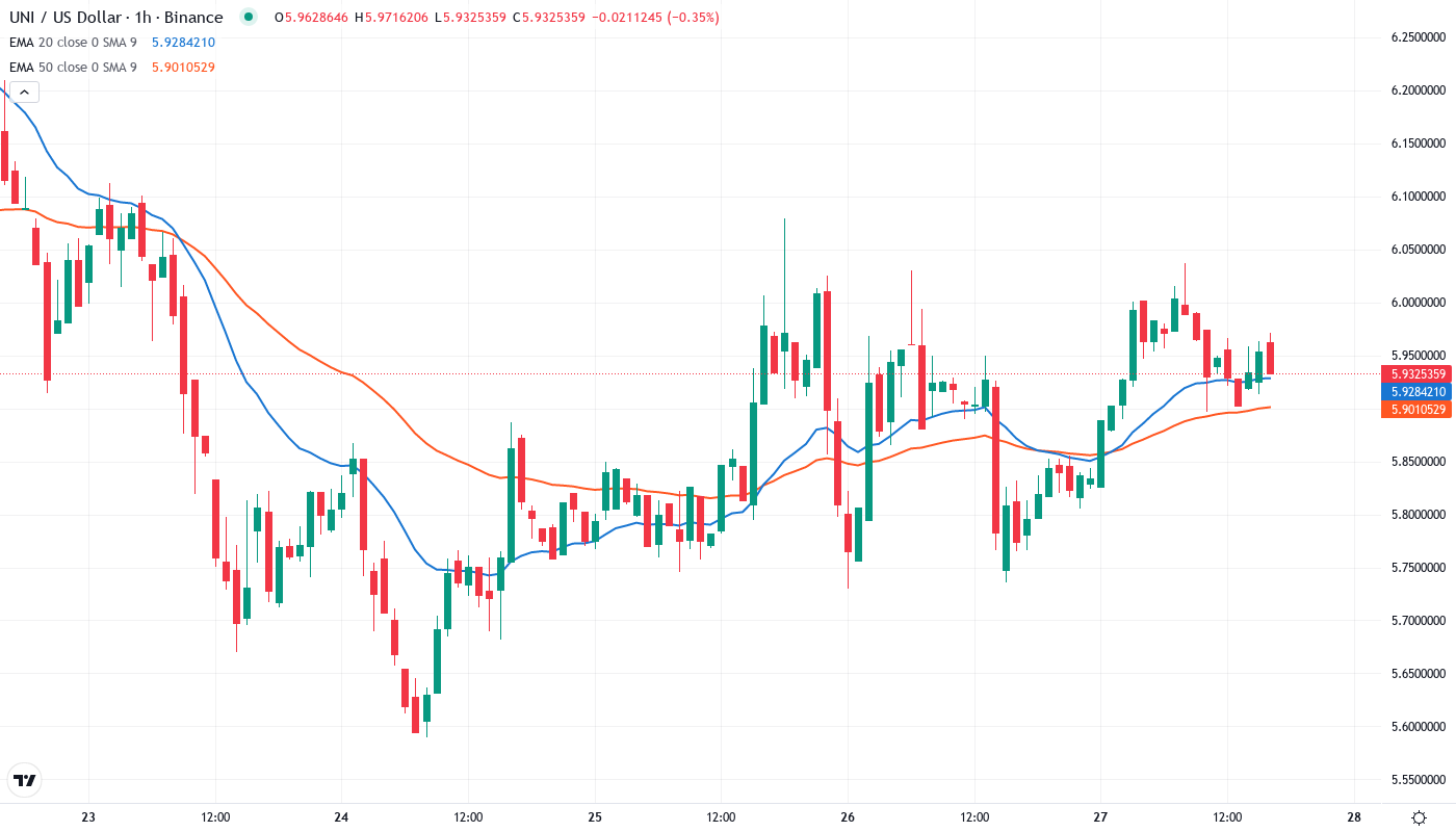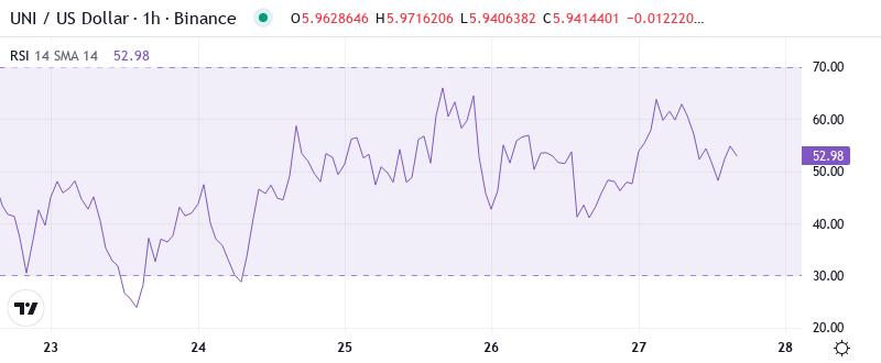 The Relative Strength Index (RSI) is at 53.24 daily time frame, it is slightly above the neutral 50 threshold as it has rebounded from more oversold levels earlier this week. This indicates that the panic selling has likely worn off, and the indicator is consolidating in an area that had usually sparked relief rallies in UNI’s recent downtrends.