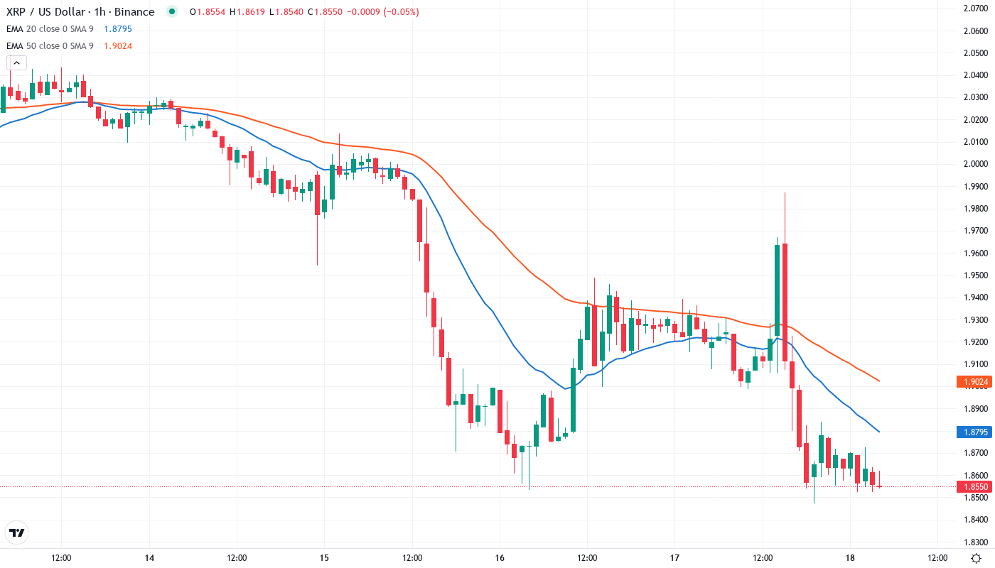 If the price of XRP manages to rise above the 20-day EMA, which is approximately $2.02, then we may see bulls push for a temporary rally close to $2.19, the monthly pivot point. To make this happen, there would need to be a surge in buying, which could be triggered by new ETF news, or institutional investors buying up more XRP since it’s considered oversold at the moment.